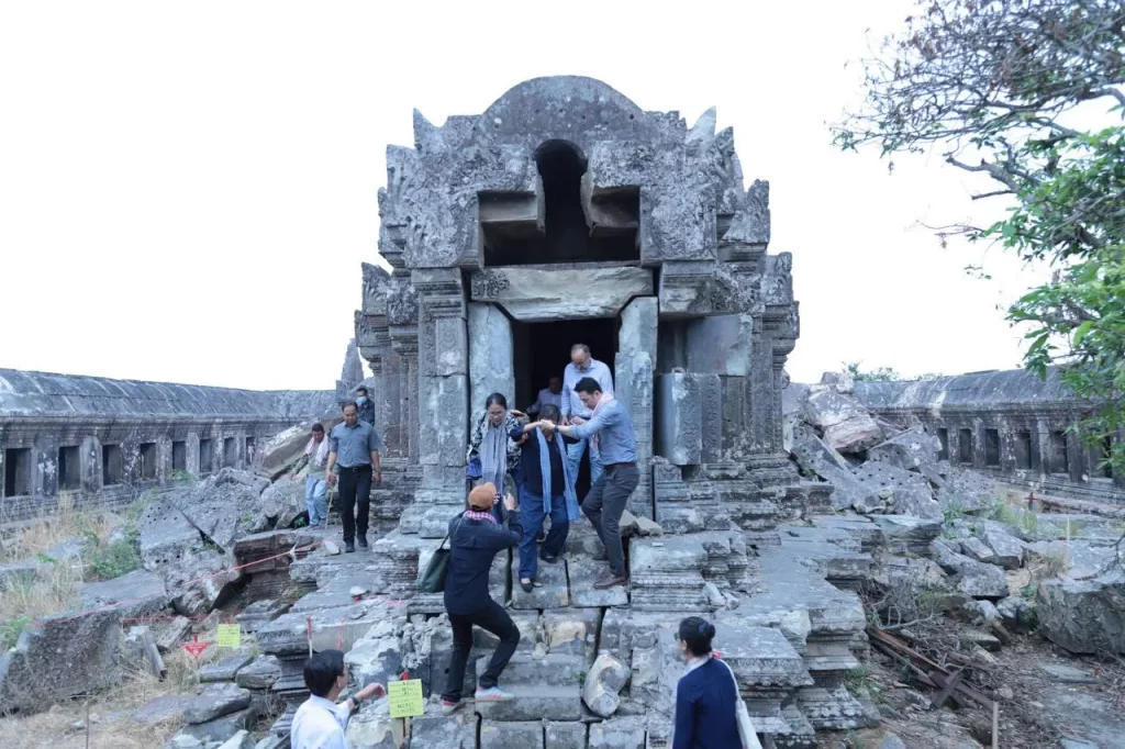 On March 20, 2026, Her Excellency Academician Dr. Phoeurng Sackona, Minister of Culture and Fine Arts, led a mission to inspect and assess the structural damages at Preah Vihear Temple caused by armed conflicts in July and December 2025. The inspection was joined by H.E. Kim Rithy, Governor of Preah Vihear Province, H.E. Kong Puthikar, Director General of the National Authority for Preah Vihear, H.E. Hang Peou, Director General of the APSARA National Authority, and various technical experts.